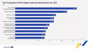 Nel 2023, le professioni relative ai responsabili delle vendite, del marketing e dello sviluppo hanno registrato il tasso di annunci di lavoro online più elevato nell’Unione Europea. Un dato pari al 26,6%.