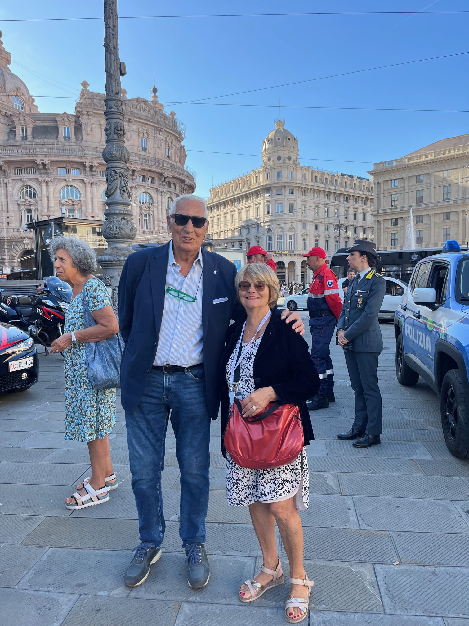 È intervenuto come padrino dell’evento anche un grande campione sportivo: il campione mondiale di pallanuoto Eraldo Pizzo, soprannominato il “Caimano” per la sua abilità di nuotatore (nella foto con la presidente 50&Più Genova Brigida Gallinaro). Presenti anche molte personalità politiche, che hanno voluto con la loro presenza confermare l’importanza anche sociale del ruolo dei nonni nella famiglia.