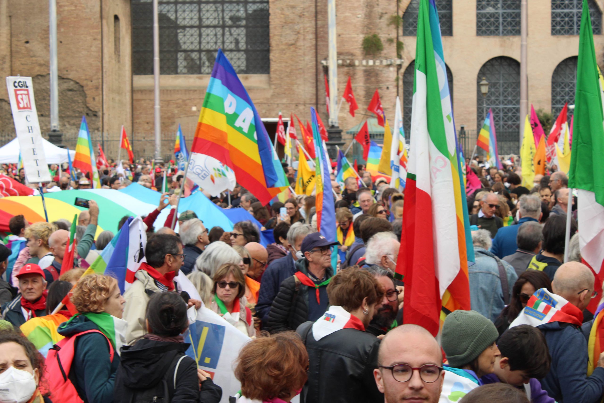 A questo appello ha risposto anche 50&Più insieme a oltre 600 realtà che nella tarda mattinata si sono ritrovate in Piazza della Repubblica e sono poi partite alla volta di San Giovanni in Laterano. Ad accogliere dal palco allestito per l’occasione è risuonata “Heal the world” di Michael Jackson (“Cura il mondo”, ndr) e da lì, poi, si sono susseguiti gli interventi sul palco con le voci di chi richiede la pace e chi vive gli effetti delle guerre.