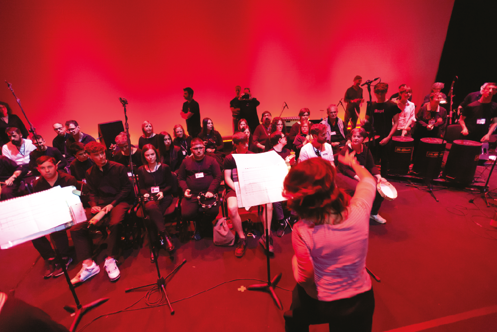 «Noi non abbiamo scelto il gruppo, il gruppo è arrivato e così com’era abbiamo cominciato a lavorarci su. È un processo rovesciato, la musica viene dopo le persone, dopo l’incontro, ed è un territorio dove tutti devono stare comodi», precisa il musicista Paolo Pecorelli, direttore artistico dell’Orchestra Ravvicinata del Terzo Tipo, che da anni coniuga l’insegnamento musicale a progetti sociali. «Quello che ci caratterizza è l’ambizione di voler fare qualcosa che si concede anche al divertimento, ma che, come ricordo alla fine dei concerti, “facciamo maledettamente sul serio”. Il percorso è frutto di tanti aggiustamenti: mantenendo il focus sull’ambizione musicale, abbiamo costruito un metodo che permette alle persone che transitano nell’orchestra di trovare il proprio posto all’interno dell’esecuzione, facendo in modo che si sentano protagonisti di un’impresa complessa e ambiziosa». E con entusiasmo, aggiunge: «Questa esperienza ha tra i suoi obiettivi una relazione inclusiva con le persone con disabilità che la frequentano, ma vorremmo superare questo concetto in favore di quello che chiamiamo ‘diritto alla bellezza’, ovvero la possibilità per tutti e tutte, indipendentemente dalle proprie capacità e inclinazioni, di partecipare ad un progetto, ad un atto artistico».