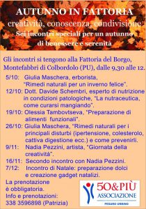 È partita il 6 ottobre la nuova serie di incontri “Autunno in fattoria”, ideata e organizzata da 50&Più Pesaro Urbino con l’intento di stimolare la conoscenza della natura, la creatività, la socializzazione.