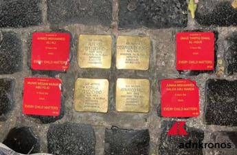 Home Ultim'ora Roma, adesivi rossi con i nomi dei morti di Gaza accanto alle pietre d’inciampo